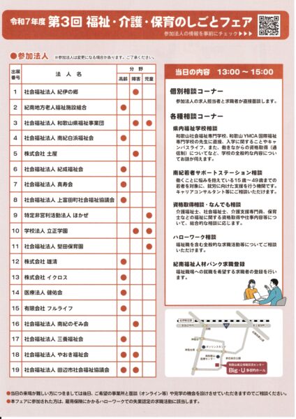 社会福祉法人田辺市社会福祉協議会 紀南福祉人材バンク TEL 0739-26-4918 メール jinzai@tanabeshi-syakyo.jp |