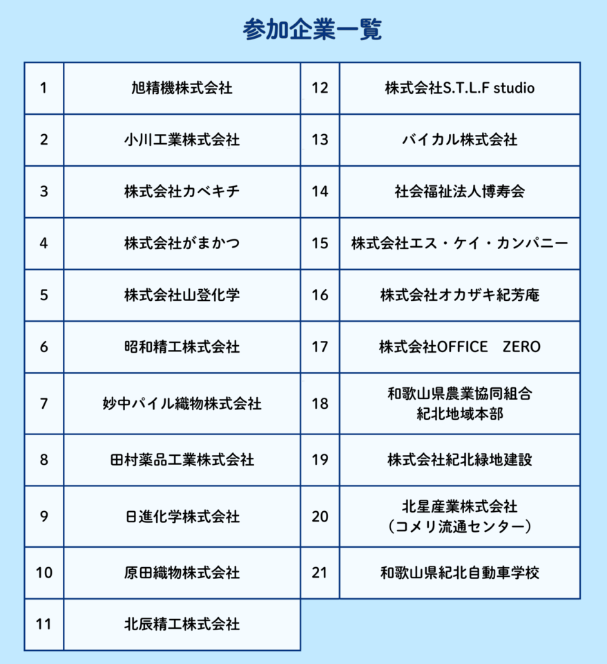 橋本市内の企業が集まり、会社の概要や事業内容、求人情報について、担当者から直接お話を聞ける求人説明会が開催されます。 就活中でも、転職希望でも、お仕事をお探しの方ならどなたでも参加できます。 「予約不要」「参加無料」「入退室自由」「服装自由」です。 橋本市で就職したい方や興味がある方はぜひ、ご参加ください! ★託児スペースあり(事前申込制)【利用時間】令和8年1月30日(金)13:00~16:00 【託児場所】橋本市保健福祉センター(2階 会議室2-A) 【申込方法】